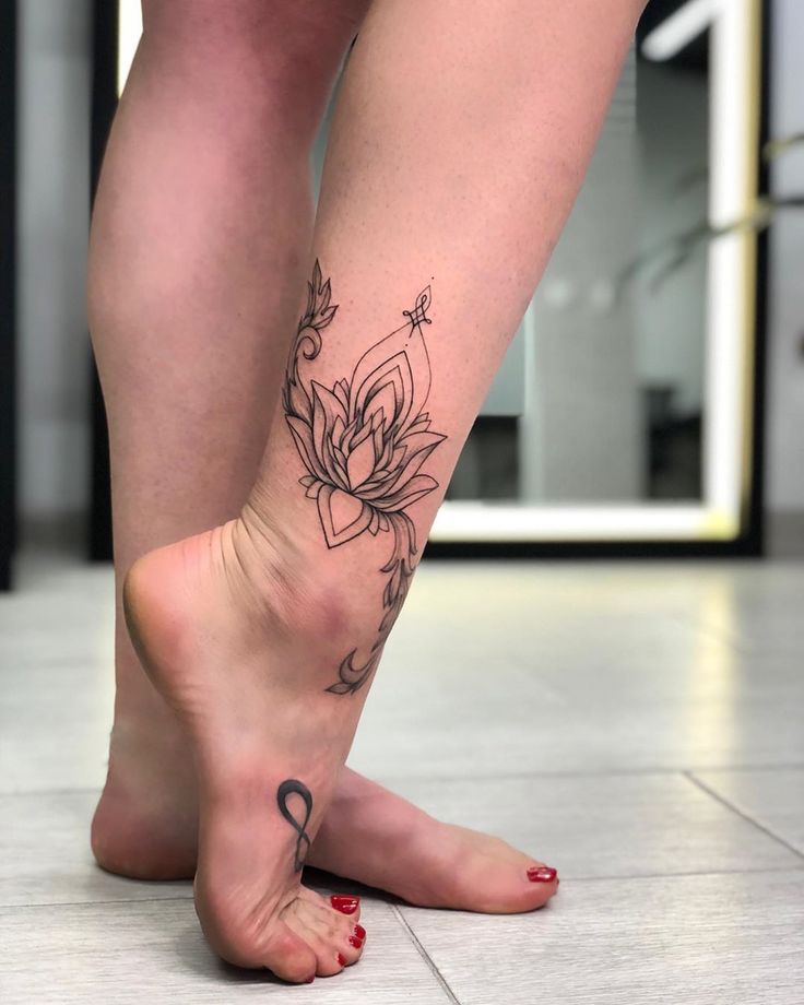 4. Татуировки на ноге предоставляют девушкам большой простор для творчества. Любая часть ноги, украшенная татуировкой, будет выглядеть шикарно! Самые красивые узоры обычно получаются на лодыжке щиколотке.