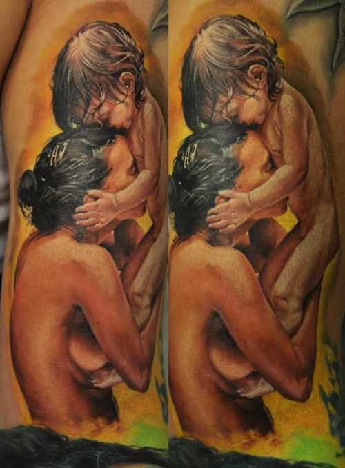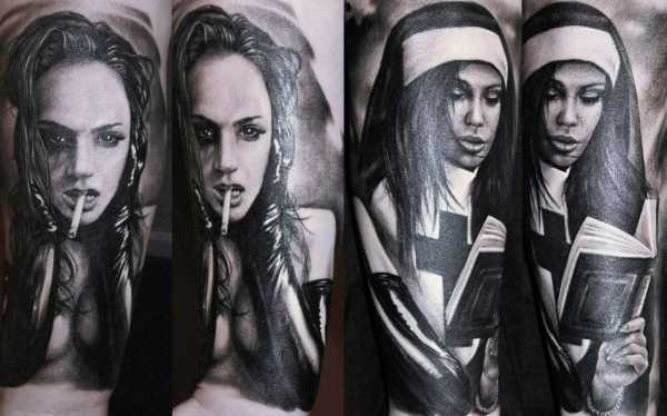 Сюжеты. На теле, как на холсте или на фотоснимке могут отражаться великие исторические события, тематические сюжеты, сцены из фильма и т.д. Даже сюжеты из Библии встречаются. Тематические образы и сюжетные линии в виде татуировки, да еще и в стиле реализма смотрятся великолепно и отображают внутренний мир и переживания владельца.