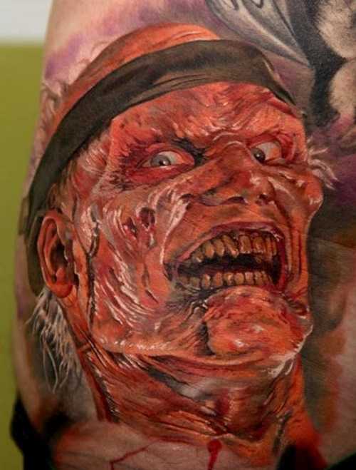 Если говорить о прочих популярных реалистичных татуировках, то обязательного упоминания заслуживают – разнообразные тематические сцены из кинофильмов, тех же компьютерных игр. Возможен и просто фантазийный сюжет, созданный в воображении заказчика и отлично реализованный мастером.