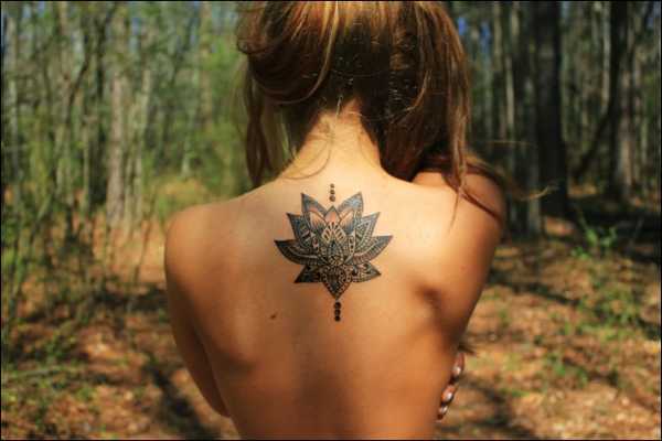 - Спина. Одним из излюбленных рисунков, используемых женщинами для изображения на спине, являются крылья. Ничуть не меньшей популярностью пользуются также птицы, бабочки и цветы. На нижней части спины и пояснице чаще всего находят место всевозможные орнаменты и т.д.