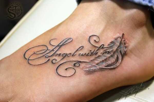 Такие татуировки широко используются прекрасным полом. Они могут запечатлеть какие-то знаменательные события и даты, отрывок из стиха, оригинальные высказывания. Выполняются красивыми буквами с завитушками или сопровождаются дополнительным небольшим рисунком. Наносятся на любой части тела.