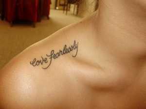 Эта область тела может выглядеть очень чувственной с татуировкой, однако она является одним из наиболее болезненных участков для нанесения татуировки. Обычно у девушек небольшие плечи, и выглядеть на них будет более аккуратно надпись, нежели большое изображение.