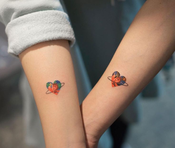 38. Соответствующие татуировки Для всех девушек, которые ищут похожие татуировки, соответствующие их подруге, соответствующие татуировки идеально подходят для них.