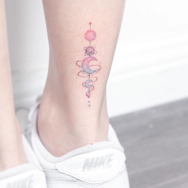 22. Татуировка фазы ЛуныТатуировка фазы Луны — еще одна красивая небольшая татуировка для женщин. Вы можете сделать татуировку фаз Луны либо на ребре, либо на ногах.