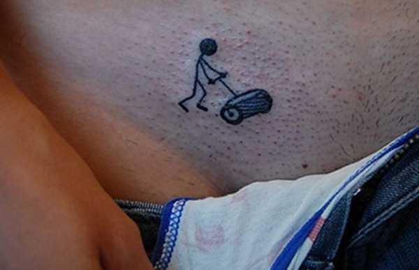 - Лобок является интимной зоной, поэтому нанесение татуировки в этом месте позволяет скрыть ее от глаз большинства людей. При этом эскиз желательно подобрать таким образом, чтобы он не смотрелся пошло. Среди девушек весьма популярные небольшие изображения бабочек, птичек, замочков или просто красивых узоров.