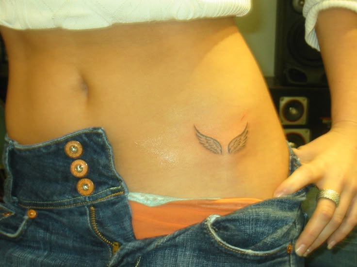 Мода на тату в районе копчика пришла примерно тогда же, когда девушки стали носить брюки и джинсы с заниженной талией, а произошло это на стыке XX и XXI веков. Обычно здесь набивают необычные орнаменты, ветки лозы с цветами, бабочек или просто крылья.