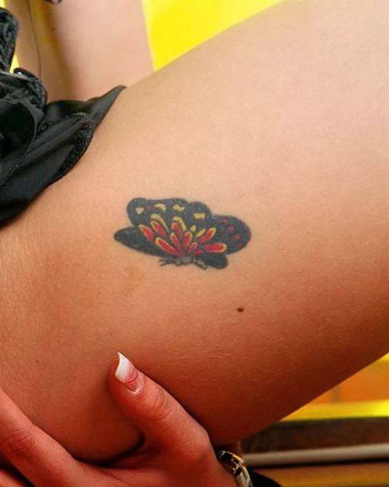 - Бабочки и мелкие животные. В одной песне поется о том, что бабочки порхают в животе. Но мы не понаслышке знаем, что этот вид насекомых может находиться и в виде татуировки на лобке. Подобные эскизы зачастую выбираются девушками с легким характером, не обремененными какими-либо житейскими проблемами.
