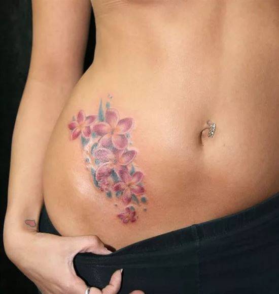 Ещё одна причина, которая заставляет дам делать татушки интересной локализации – это «маскировка» имеющихся недостатков (послеродовых растяжек, обезображивающих послеоперационных шрамов и т.