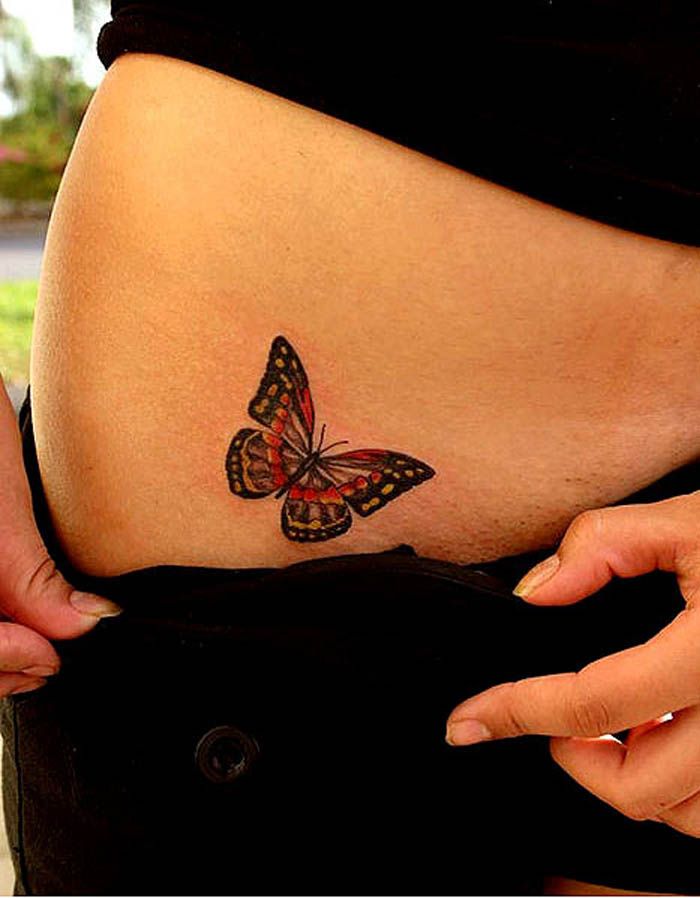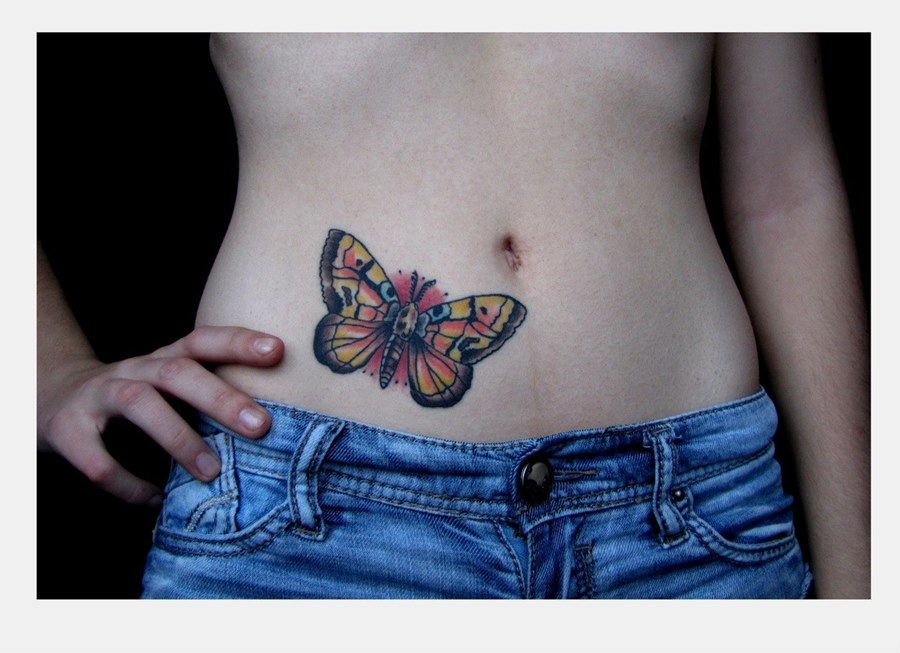 - Большая разноцветная бабочка, покрывающая живот от низа грудной клетки