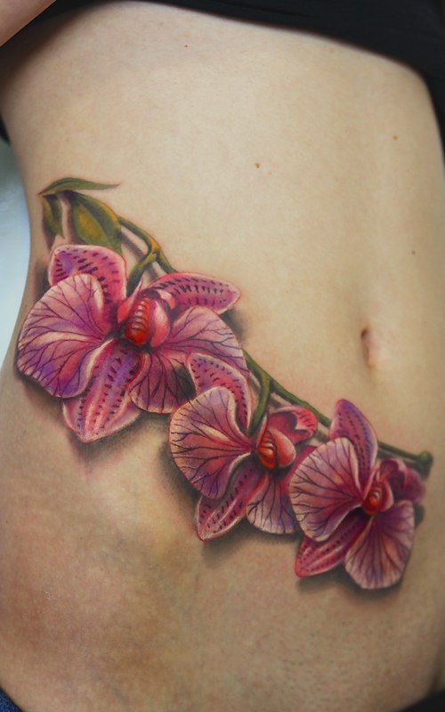 Татуировка орхидея на боку тела