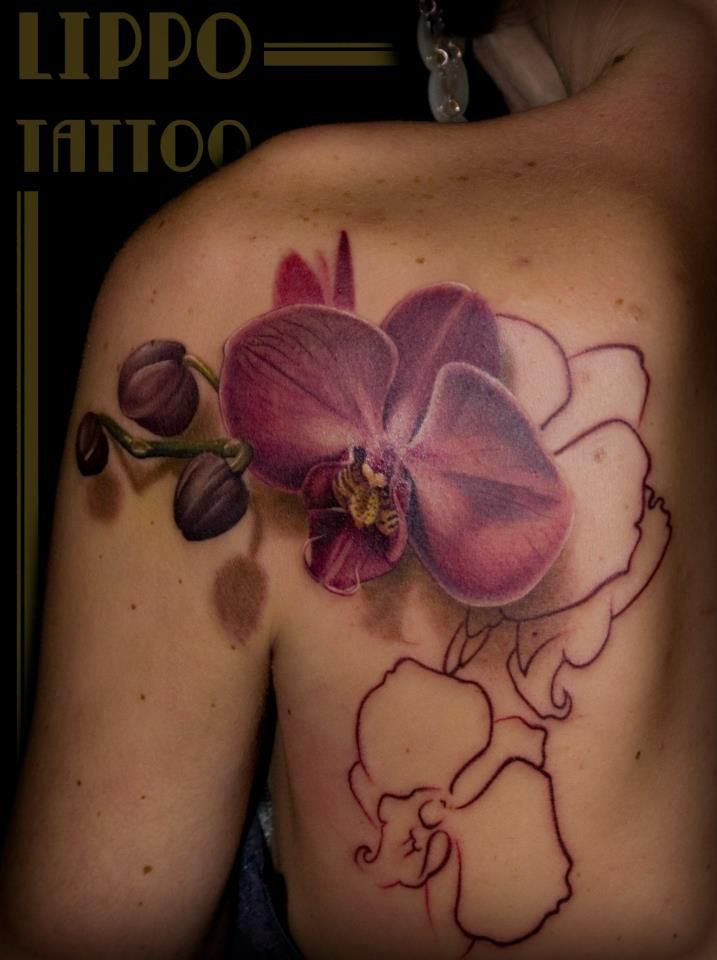Татуировка орхидеи на плече. Для этой татуировки нет лучшего места, чем плечо.