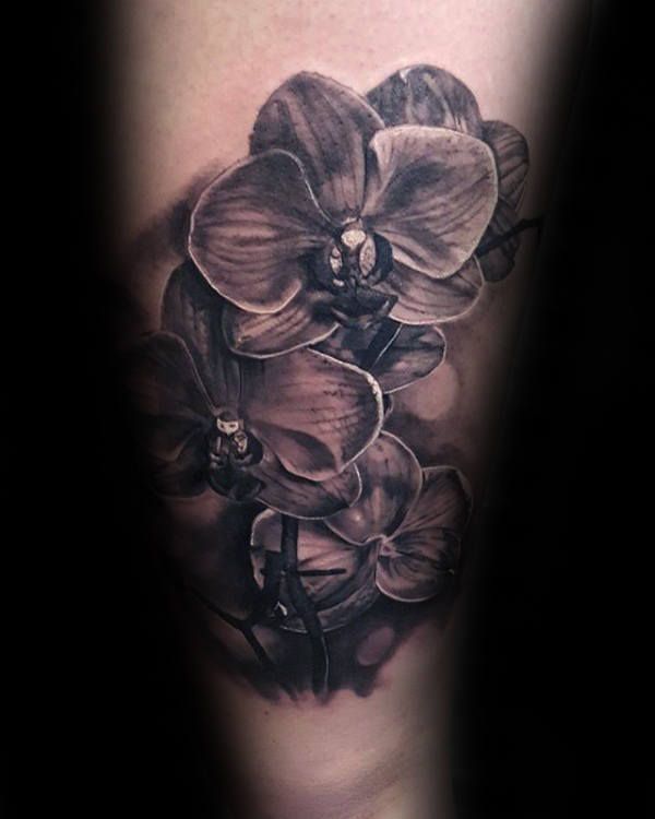 Тату “Серая орхидея”. Хотя цветные татуировки выглядят красиво, но изящество серых татуировок безупречно.