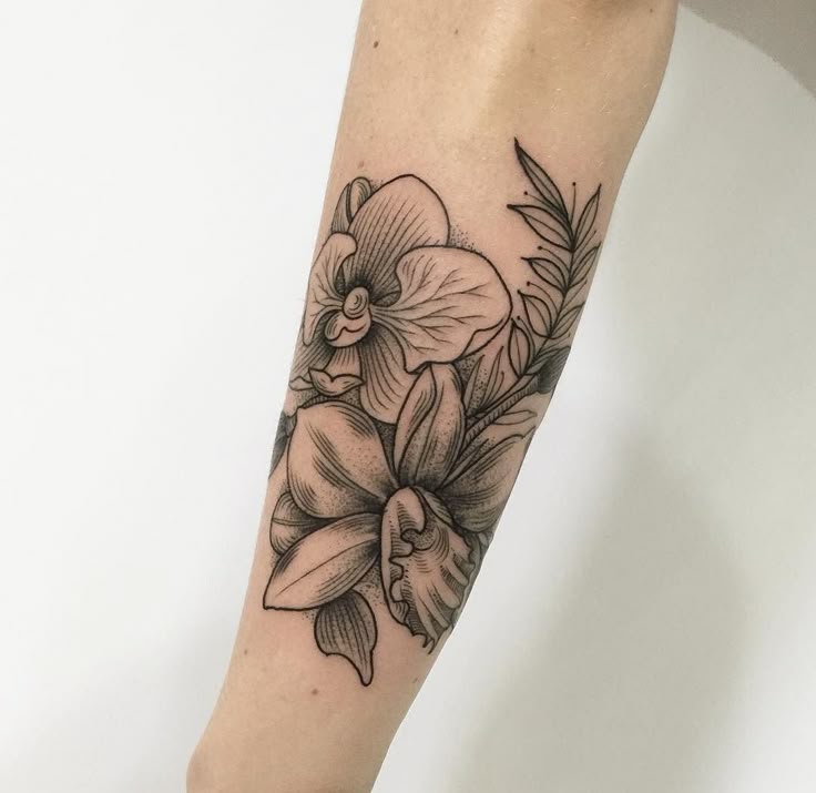 Татуировки для девушек на ноге орхидея. Татуировка орхидея