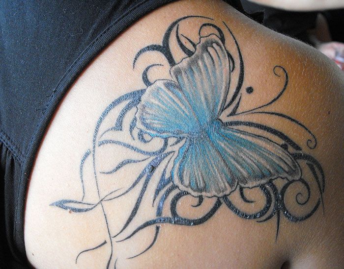 Таким образом, это может быть хорошей татуировкой для женщин. Женщины могут носить такие маленькие татуировки на плече с разноцветными бабочками.