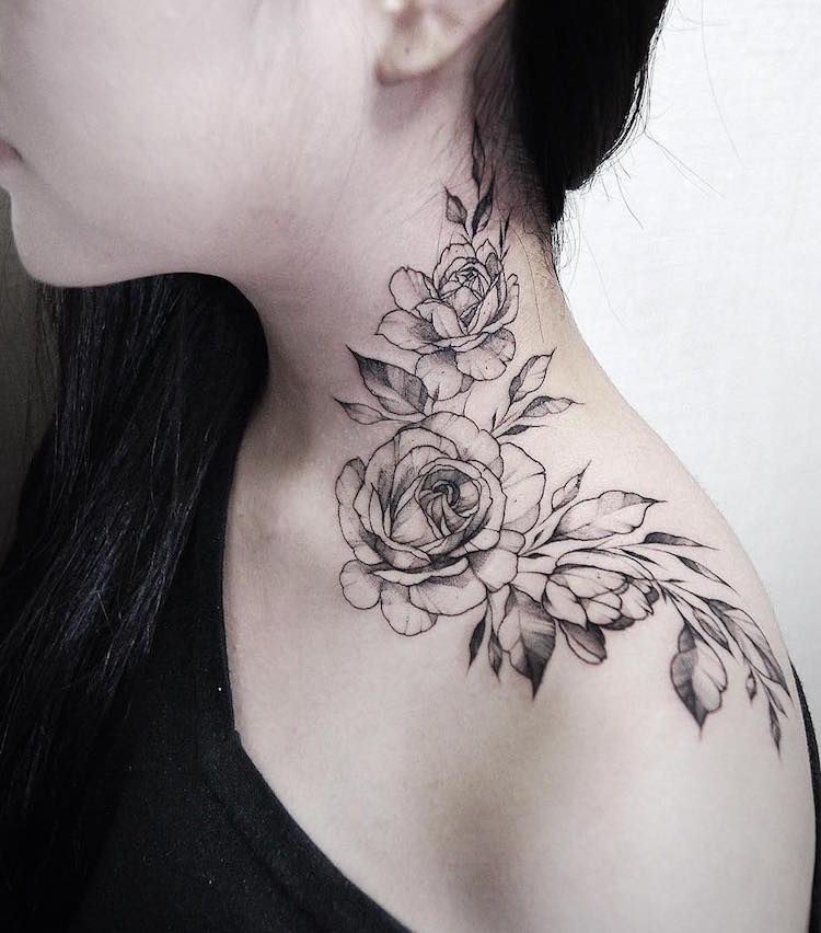 По сравнению с другими частями тела шея имеет меньшую площадь поверхности брезента. В результате женские татуировки на шее обычно маленькие и тонкие.