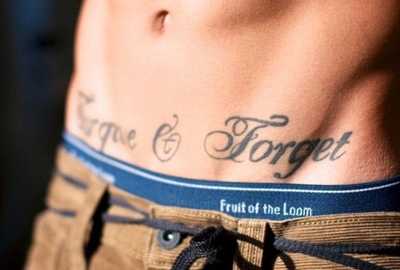 Тату надписи на животе не так распространены, потому что эта часть тела является достаточно болезненной для татуировок. Как женский, так и мужской живот может менять свою форму со временем. Вместе с ним будет меняться и татуировка. При этом даже не обязательно толстеть. Накаченные на животе кубики пресса могут так же негативно сказаться на внешнем виде татуировки, как и слегка оплывший животик. Надписи для этой части тела выбирают потому, что они минимальны по площади нанесения по сравнению с полноценными многокрасочными полотнами.