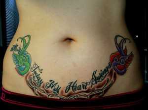 Конечно же, эти нательные изображения лучше доверять опытным татуировщикам. Нередко на животе могут наличествовать шрамы, оставшиеся после операций (например, после вырезания аппендицита) или какие-нибудь другие дефекты, а хорошо выполненное тату их удачно скрывает. Кроме прочего, такие рисунки стимулируют представительниц женского пола к тому, чтобы следить за своей фигурой, ведь мало просто выставить животик с татуировкой, необходимо, дабы этот животик еще был украшен спортивным прессом или хотя бы не свисал. К тому же, кожа на животе весьма подвержена изменениям – соответственно, желательно всегда находиться в хорошей форме и следить за собственной фигурой.