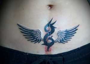 Достаточно популярными у девушек, набивающих себе тату в центре живота, считаются: