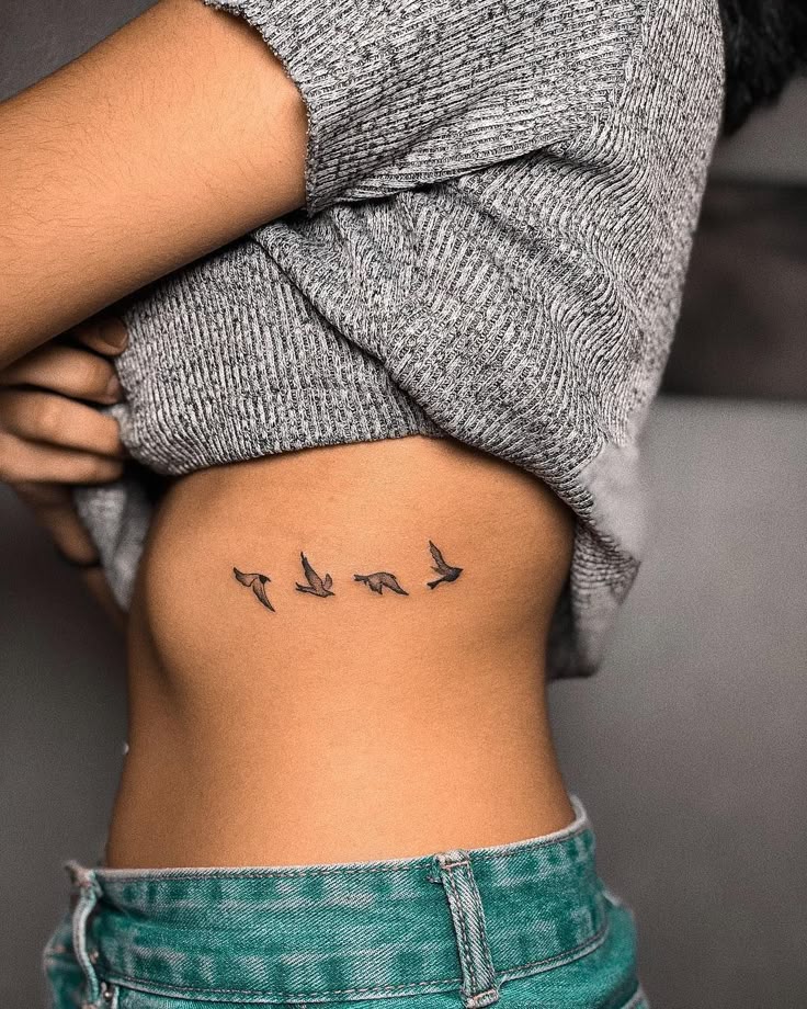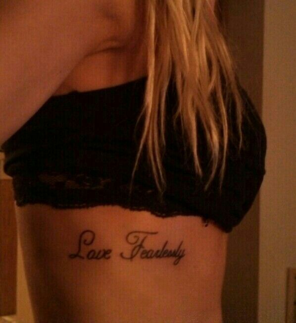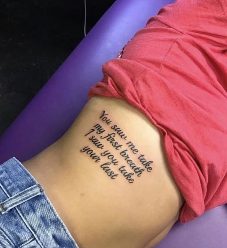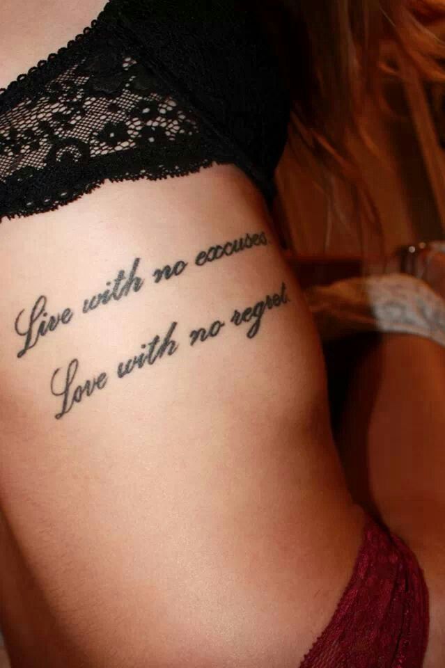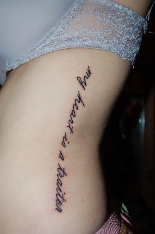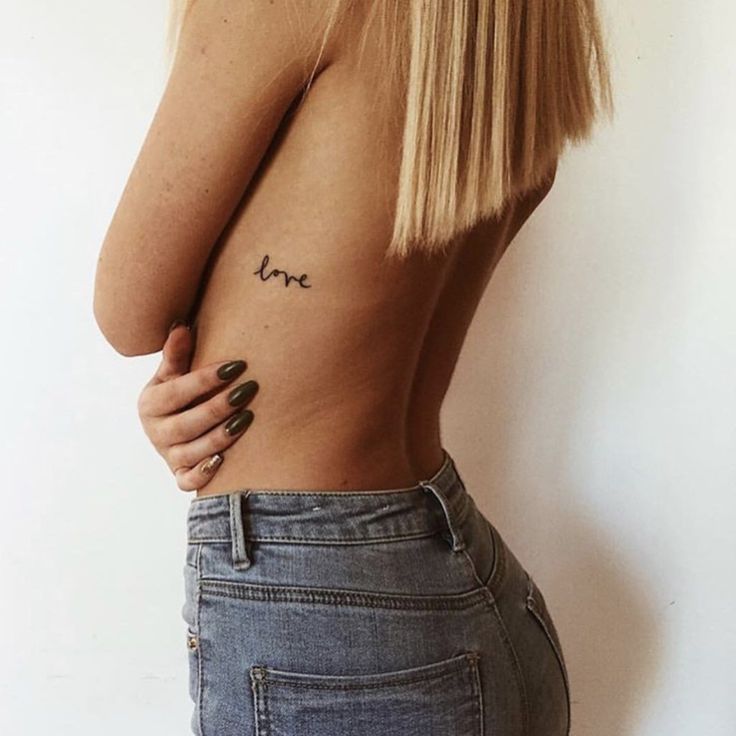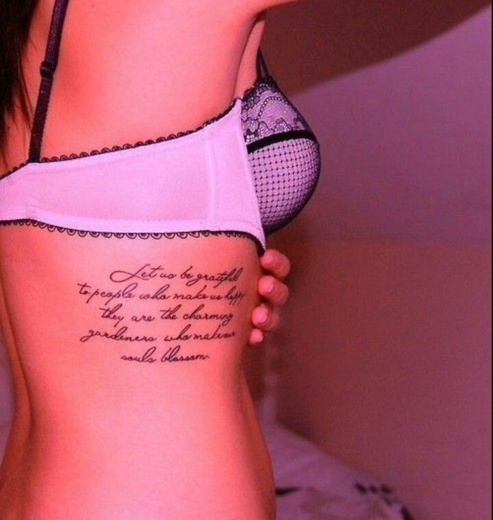 Татуировка надпись на ребрах почти всегда скрыта от чужих глаз. Это своего рода талисман своей хозяйки, напоминание или девиз, о котором важно помнить, но не важно увидят ли это другие люди.