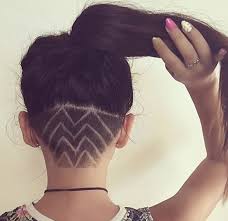 с рисунком на голове, выбритыми боками и пробором на затылке для женщин и девушек