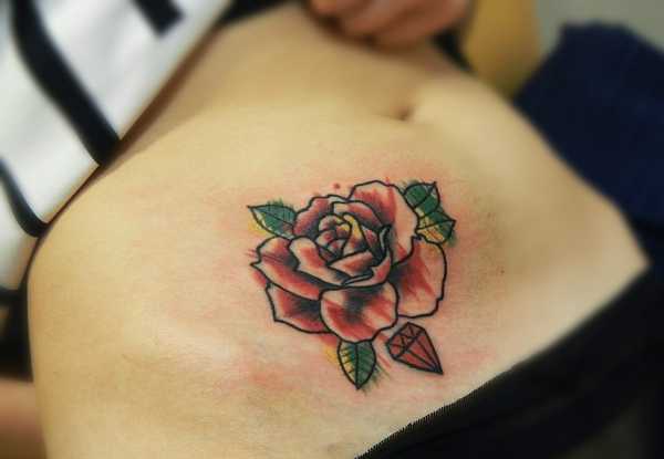 - Маленькую или большую татуировку делают на одной стороне живота.