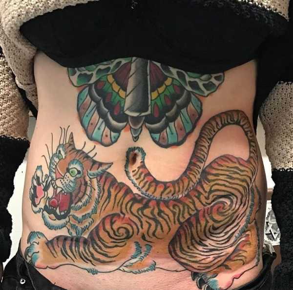 - Татуировки с животными на животе. Красиво смотрится изображение пантеры, кошки. Прекрасно смотрится на животе девушки татуировка с ящерицей, змеей.