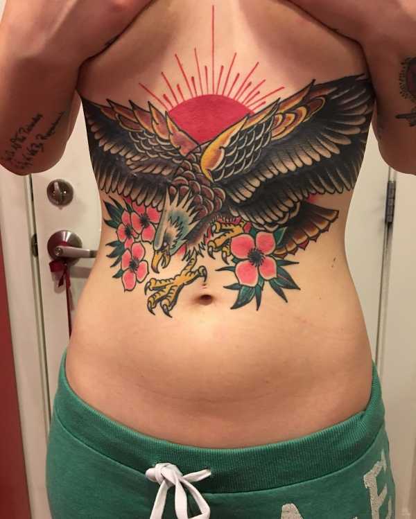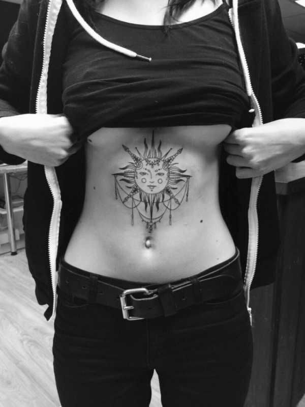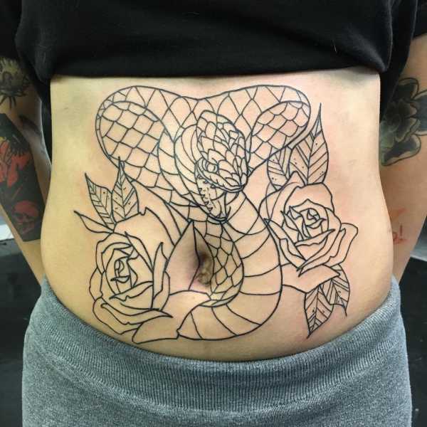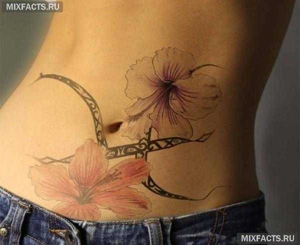 Татуировки на животе помогут скрыть нежелательные шрамы на этом участке тела. А симметричный рисунок, изображенный на обеих сторонах животика, может подчеркнуть достоинства фигуры и скрыть недостатки.