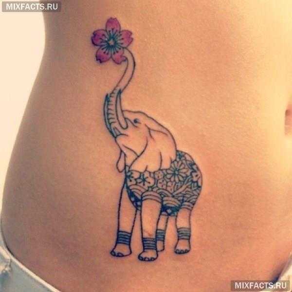 Змея – символ мудрости, силы и сексуальной власти женщины, гибели и искушения. Кошка может означать желание свободы, независимости. Принято считать, что татуировка в виде кошачьей лапки может принести носительнице удачу, а изображение слона поможет стать носительнице сильнее, мудрее, серьезнее.