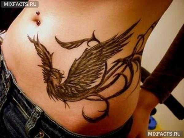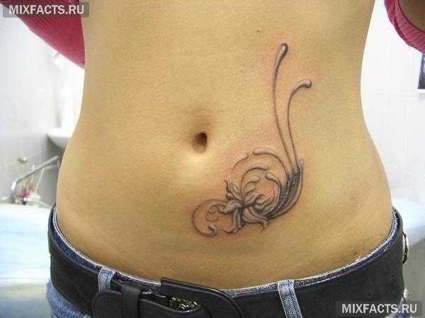 - Зону нанесения тату должна выбирать хозяйка рисунка, желательно определиться с этим вопросом заранее: например, участок ниже пупка, от линии грудей до пупка, наколоть рисунок по бокам или же посредине живота.