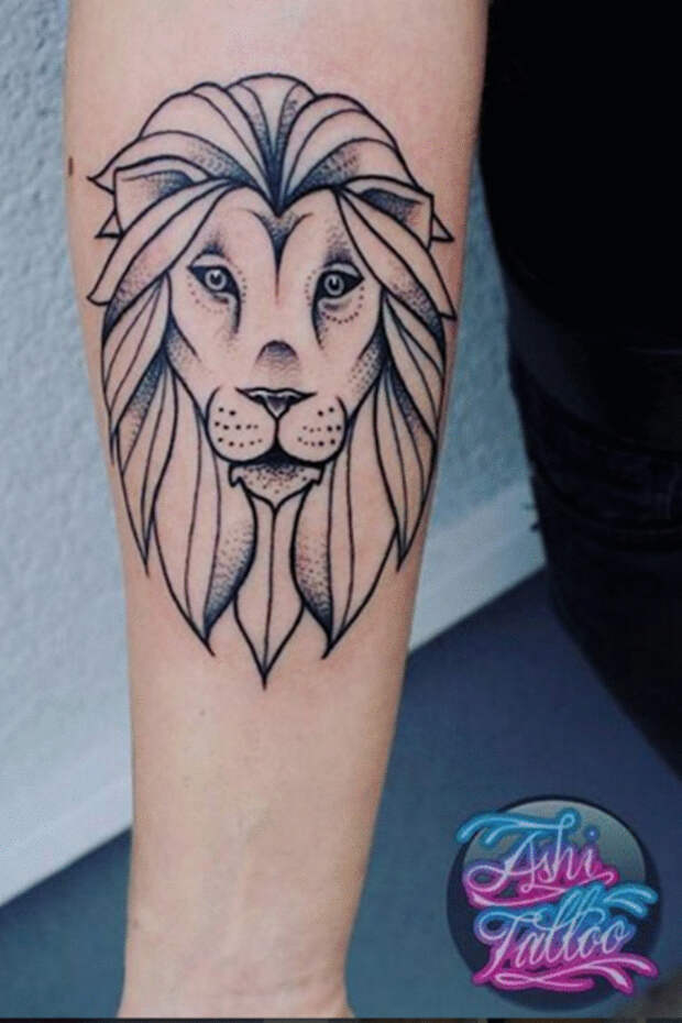 Простая татуировка Льва на голени Если вы любите простые узоры и их изображение в своем боди-арте, эта женская татуировка Льва станет идеальным дополнением к вашей коллекции татуировок и другого боди-арта. Если вы собираетесь в отпуск, вы можете продемонстрировать свой рисунок, выгравированный на голени, которую можно прикрыть обычной одеждой, когда вы ее не носите. Простые линии и очаровательные точки могут быть использованы для создания образа, подходящего для дам всех возрастов.