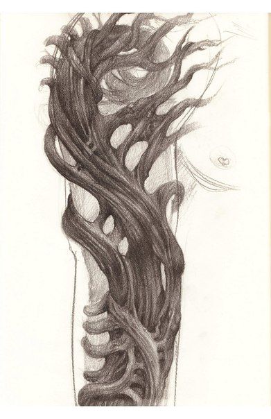 Можно разыграть эту идею несколько иначе. Оставить травмированную кожу, открывающую внутренний мир человека, который состоит вовсе не из костей, мышц и суставов, а из переплетенных лиан и самых настоящих джунглей. Такой эскиз в стиле «Биоорганика» выберут креативные и творческие личности, желающие выделяться из толпы.