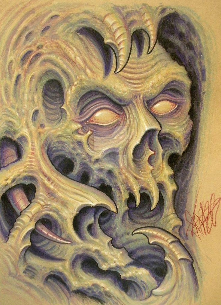 Идея биоорганики в татуаже зародилась в 90-х годах в Америке. Существует распространенное мнение, что мастера в создании эскизов вдохновлялись работами именитого художника Гигера.