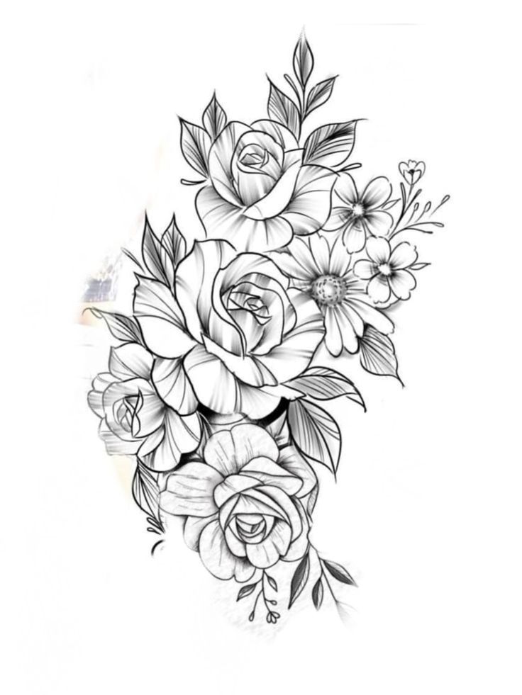 - иллюстрация цветка белой розы, татуировка Черная роза рисунок, рисованной цветы, лист, ветка, монохромный png 529x959px 91.85KB