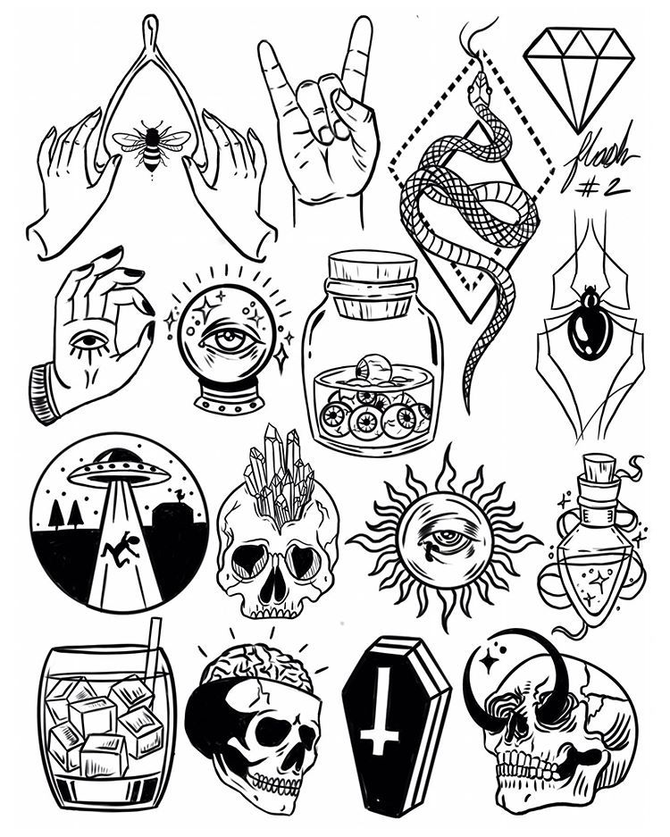 Прелесть этого подхода в том, что он делает больший акцент на содержании, чем на художественном подходе. Часто это делается с четкими, чистыми линиями без каких-либо штриховок. Нет никаких ограничений на то, что вы можете или не можете делать, но большинство людей выбирают что-то простое или маленькое, что идеально, если вы ищете тонкий предмет или что-то незаметное и легко спрятанное.