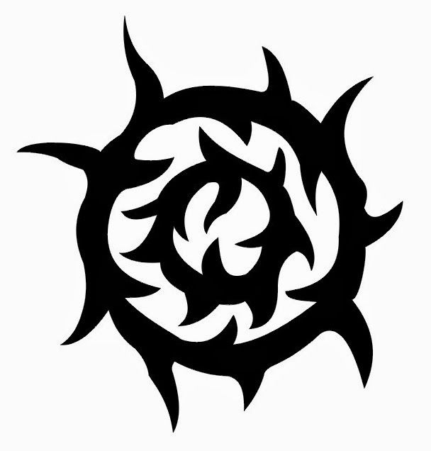 Солнце в этнических татуировках является частью масштабного сюжета. В большинстве случаев оно дополняется орнаментальным узором с определенной символикой. Наносится в черном цвете.