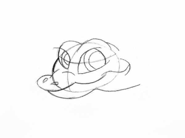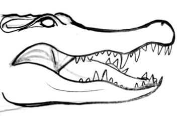 Следуя данному эскизу, рисуйте форму головы крокодила.
