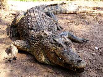 Голова длинная, коническая. Глаза и ноздри на верхней части. Линия рта довольно извилистая и очень длинная – оно и понятно – крокодил может раскрывать рот на удивление широко.