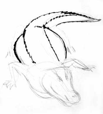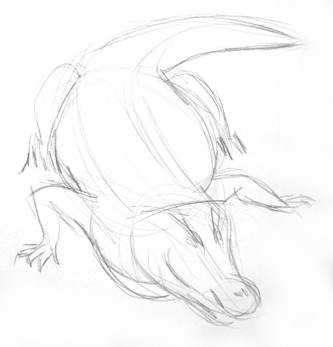 Второй урок – как нарисовать крокодила ползущего прямо на зрителя!.