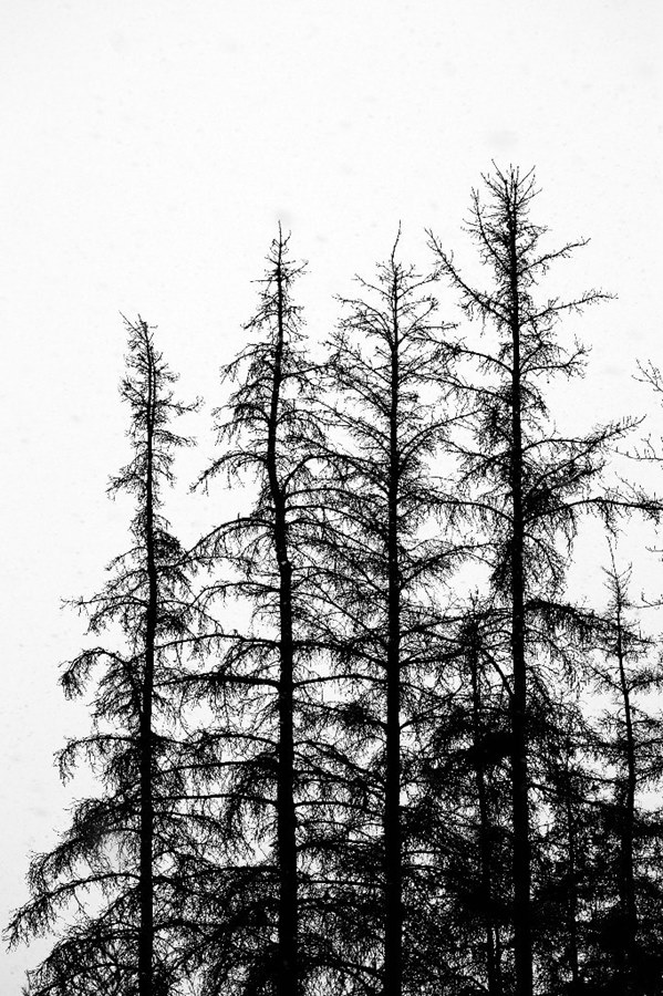 Посмотрите внимательно на лесополосу. разные виды хвойных имеют очень разные формы. Избегайте симметричных верхушек деревьев, которые выглядят как зубы дракона. Меняйте расстояние, высоту, полноту и форму по мере продвижения.