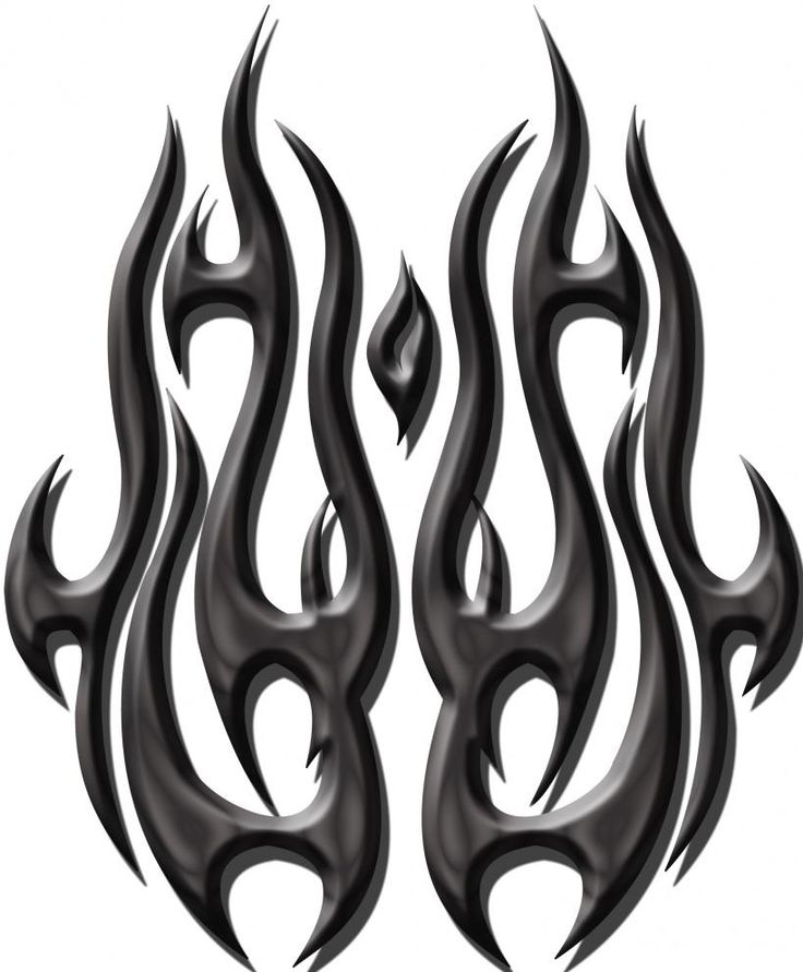 Вышеупомянутая огненная татуировка — красивая и простая работа, полностью выполненная в черном цвете. Он использует естественный тон кожи для бликов.
