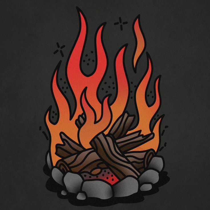 Что говорят вокруг костра? Говорят, что эта татуировка просто бомба. Это действительно очень приятная работа. От бревен к огню к приятной тени дыма.