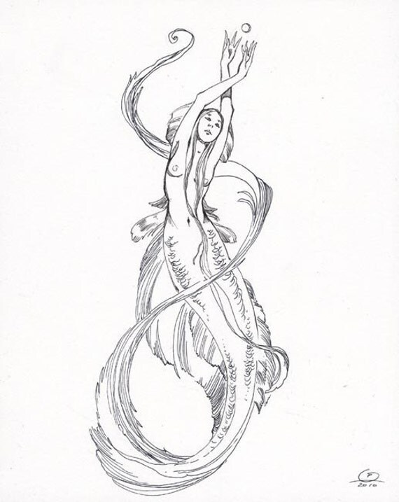 При выборе эскизов с изображением русалки многие специалисты рекомендуют обратить свое внимание на стиль лайнворк – это новое и оригинальное решение, манящее своей красотой.