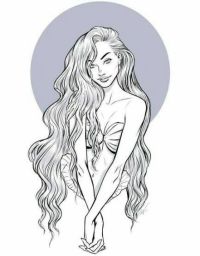 Затем, прорисуйте форму лица русалки, а после этого начните рисовать ее длинные, пышные, морские волосы.Для этого стиля хорошо подходят длинные, вьющиеся и прямые линии. Вместо того, чтобы нарисовать челку, я решил разделить ее прическу на две части. Как только вы закончите создавать прическу, по вашему выбору, добавить немного деталей на пряди волос.