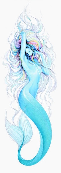Русалок всегда изображают полуобнаженными девами. Стили могут использоваться разные, в зависимости от предпочтений носителя. Но лучше создавать реалистичные, полноцветные изображения, раскрывающие красоту женского тела в полном объеме.
