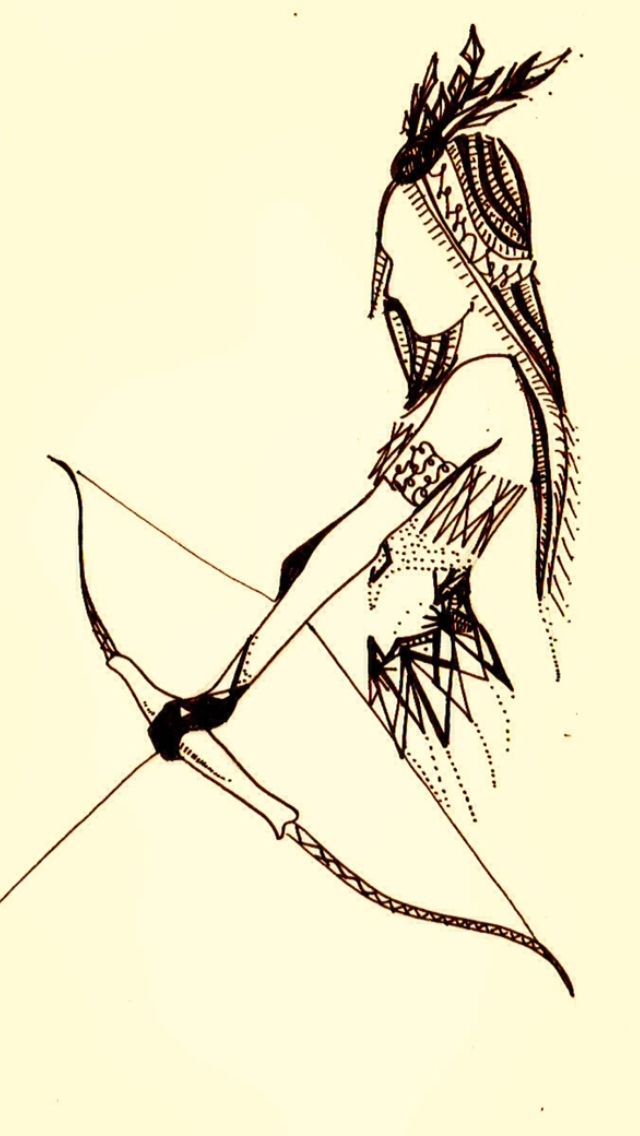 У натянутой тетивы со стрелой – смысл мужского здоровья, жизнестойкости. Парни отдают предпочтение чёрно-белым тонам. Чаще за основу берётся простейшая форма, исключающая добавочные орнаменты. Эскиз дополняется убитым животным, символизирующим победу, луком, орлом. Знак свойственен горячим активным индивидуумам.