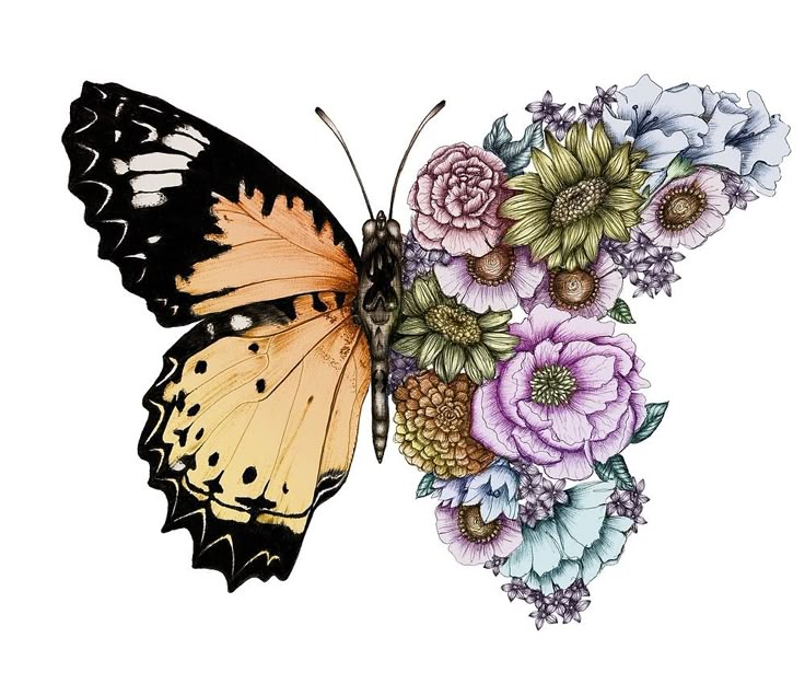 Если бабочка изображена с хризантемой, то такое тату говорит о вечной красоте его обладательницы. Насекомое с кувшинкой указывает на чистоту и верность девушки. Бабочка, сидящая на лилии, символизирует чистые помыслы и созидательное мышление.