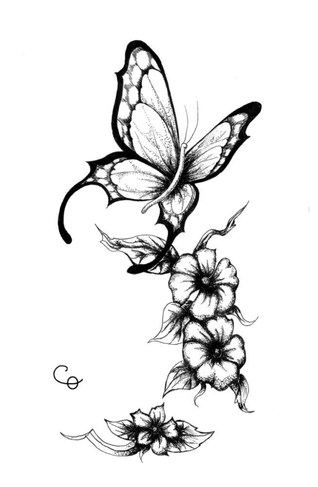 Тату бабочки, где насекомое является главным элементов рисунка, достаточно не много. Как правило, хрупкое насекомое изображается в компании других элементов. Татуировку бабочки принято окружать цветами.