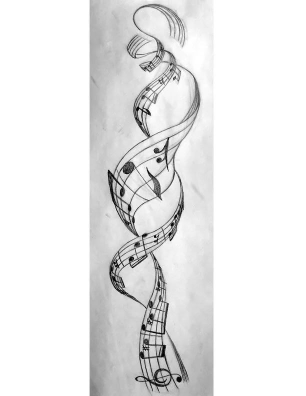 Этот прекрасный дизайн татуировки принимает фразу за чистую монету и создает один из лучших дизайнов татуировки, который близок к фактической фразе, потому что татуировка идеально соединяет фигуру ДНК с музыкальными нотами и, таким образом, образует татуировку. соответствует своему значению.