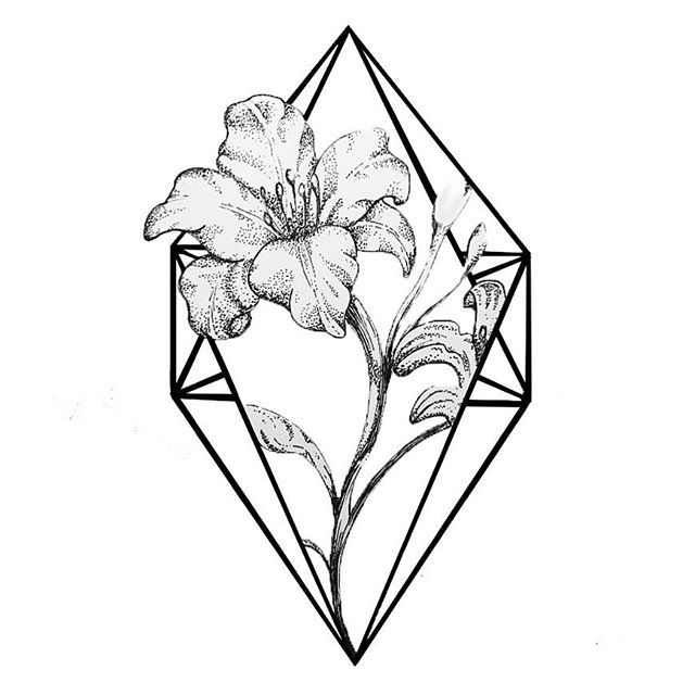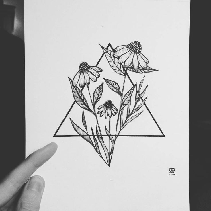 Изящная татуировка в виде цветка — милая идея с оттенком четких линий. Эта треугольная форма с жирными линиями заключает в себе контур цветка, насыщенный черными чернилами.