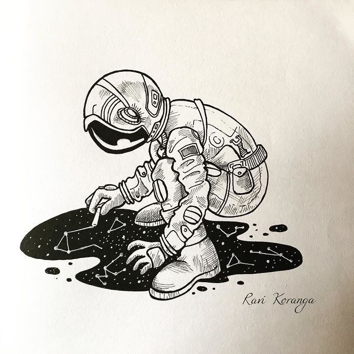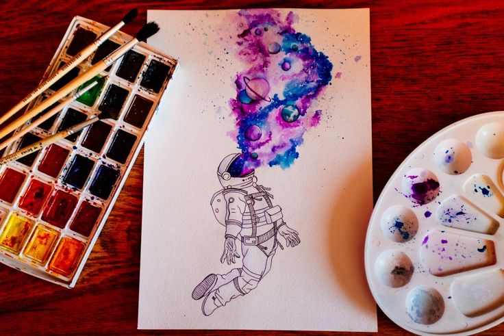 Для воплощения космических рисунков подходят стили дотворк, реализм, графика.